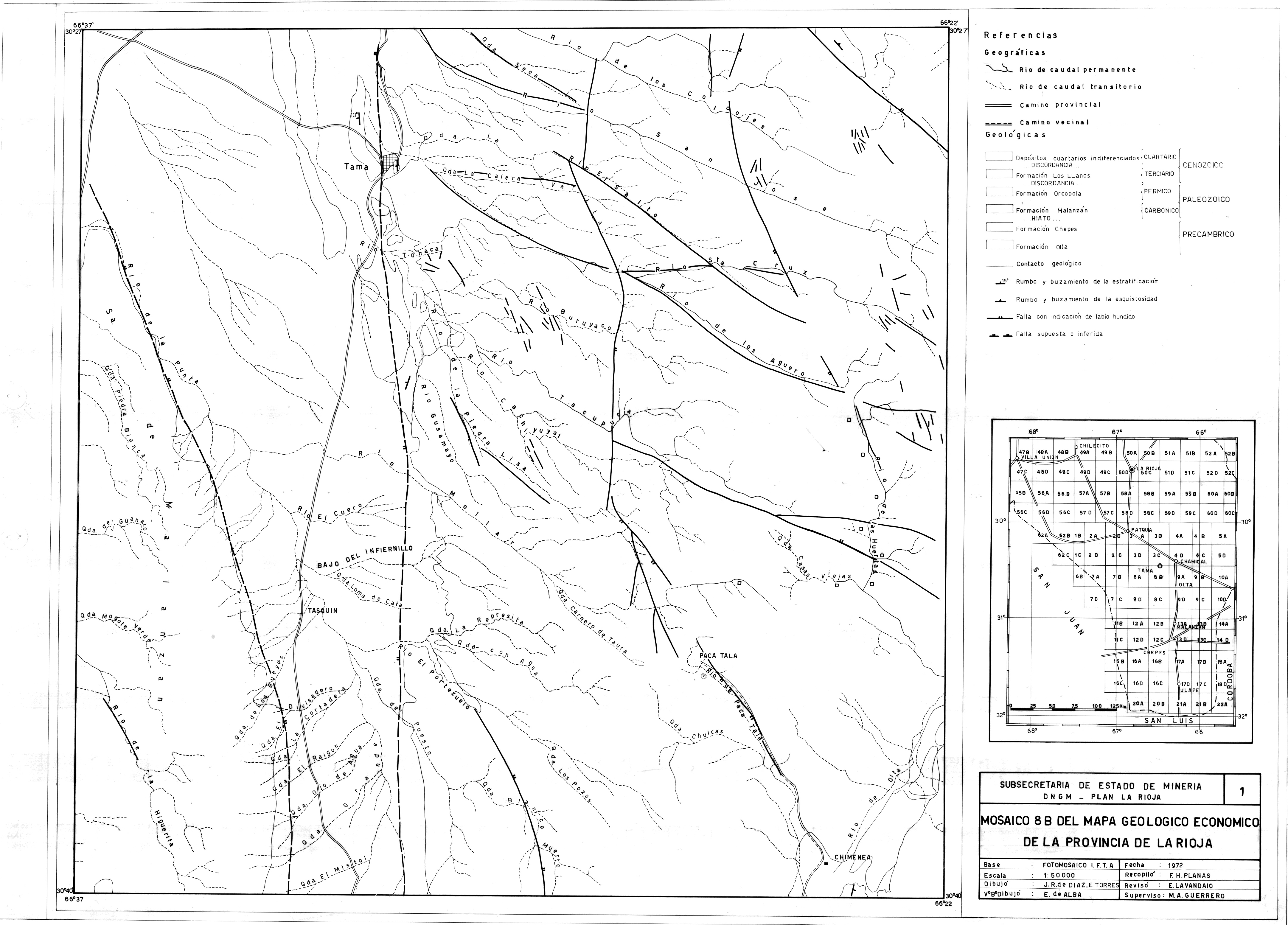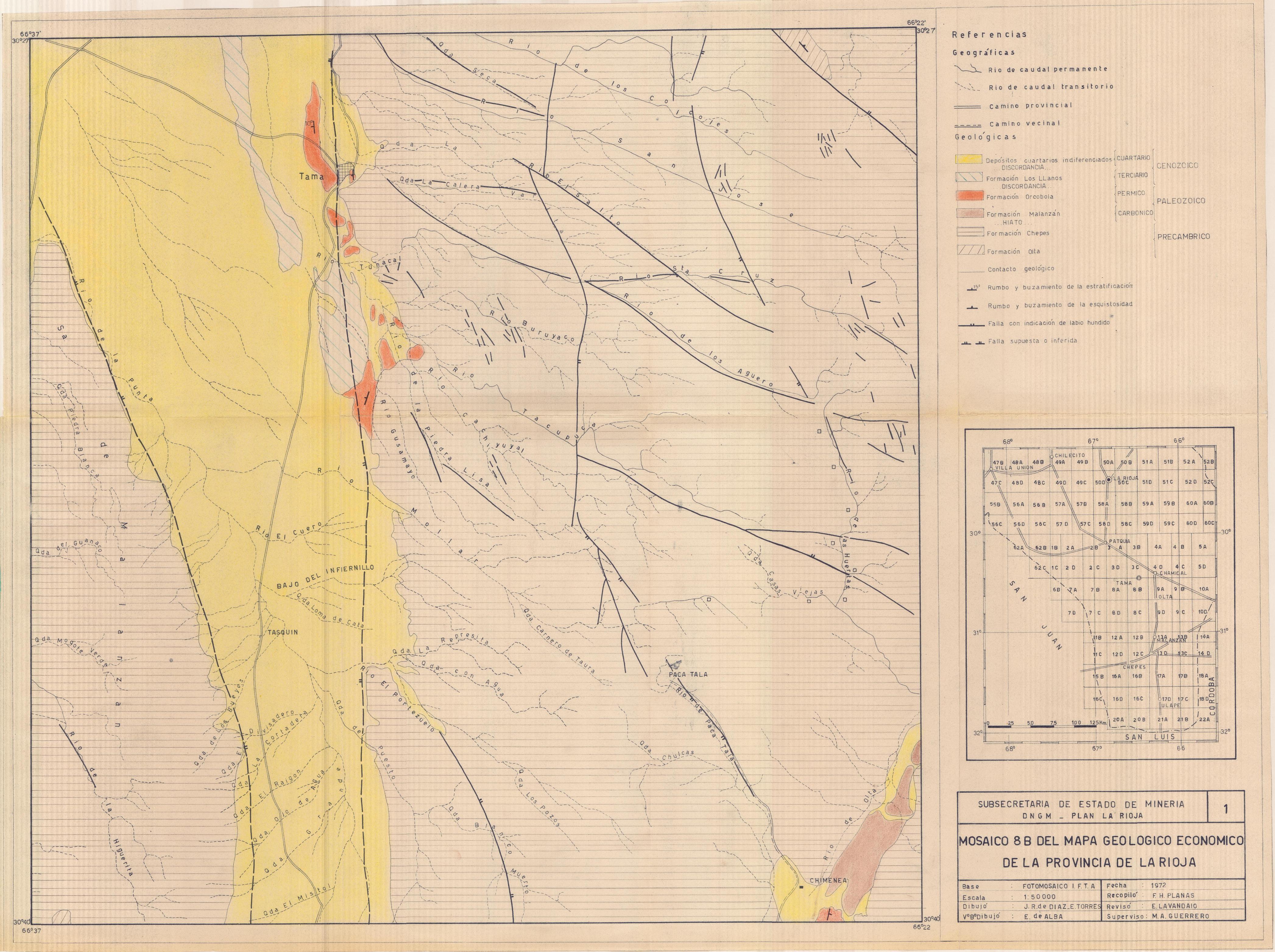 Argentina. Dirección Nacional de Geología y Minería. Plan La Rioja, 1972. Descripción de los Mosaicos 8A y 8B del Mapa Geológico Económico de la Provincia de La Rioja. La Rioja, Dirección Nacional de Geología y Minería. Plan La Rioja (ex Delegación Plan Cordillera Norte)