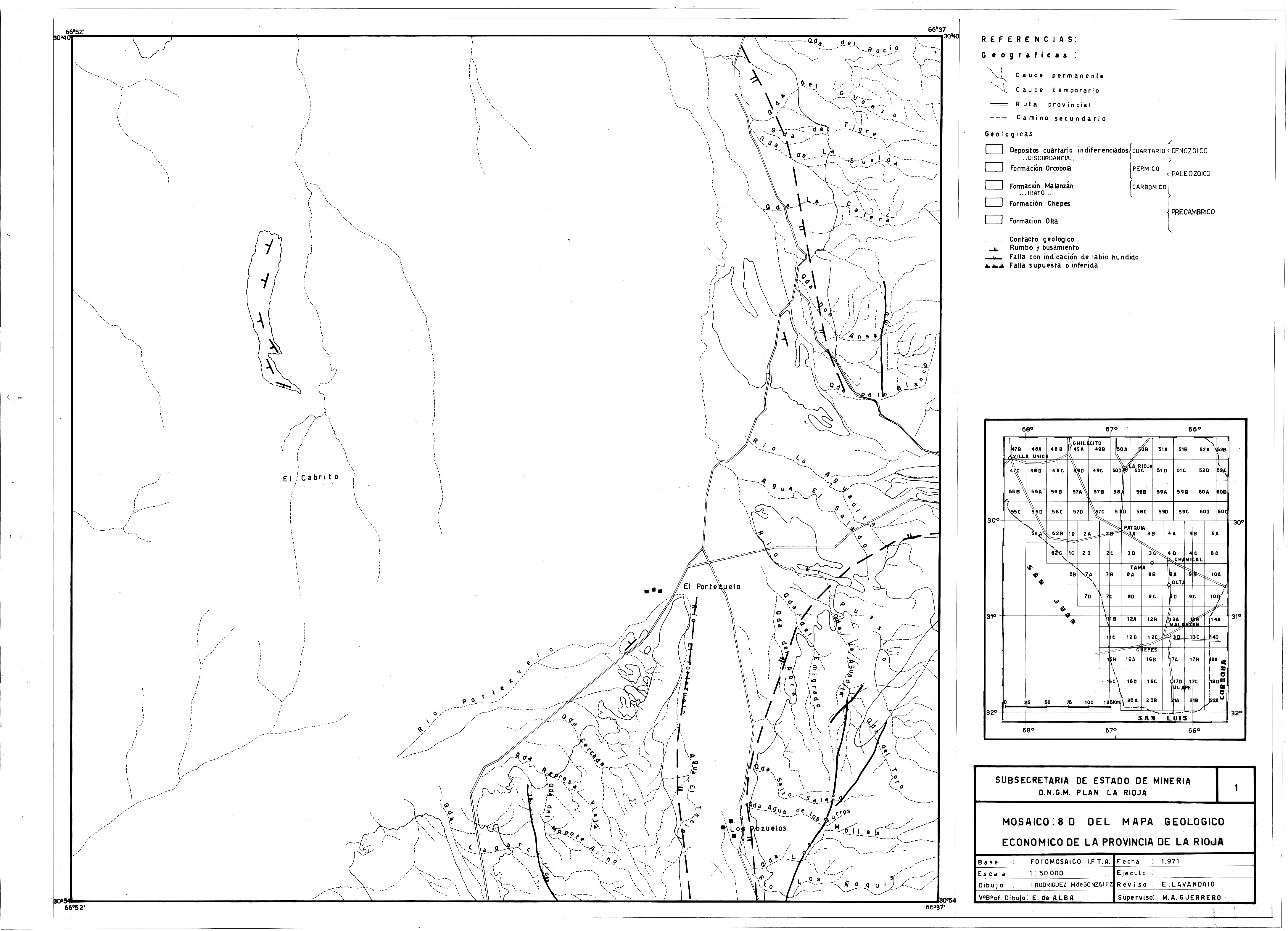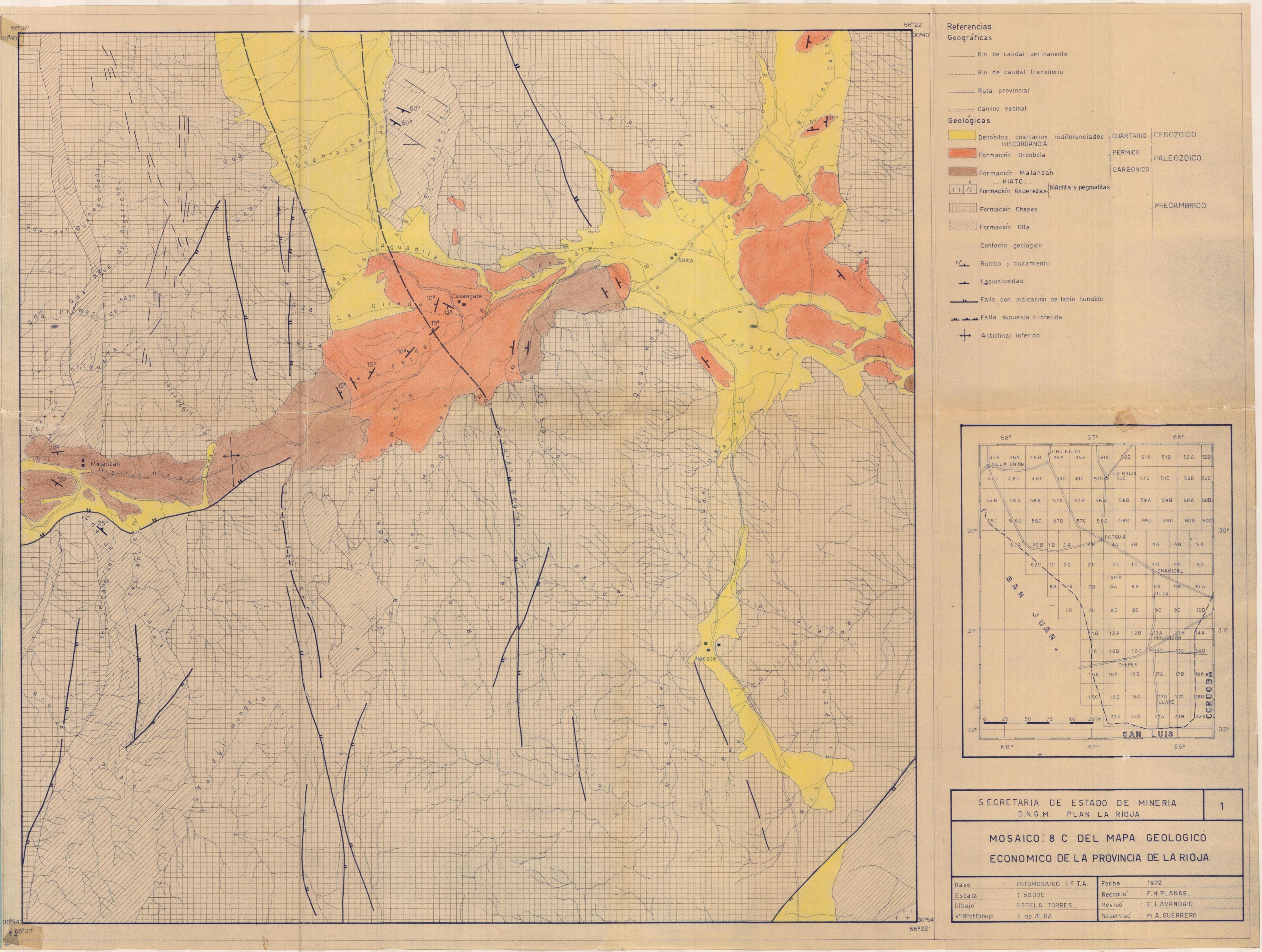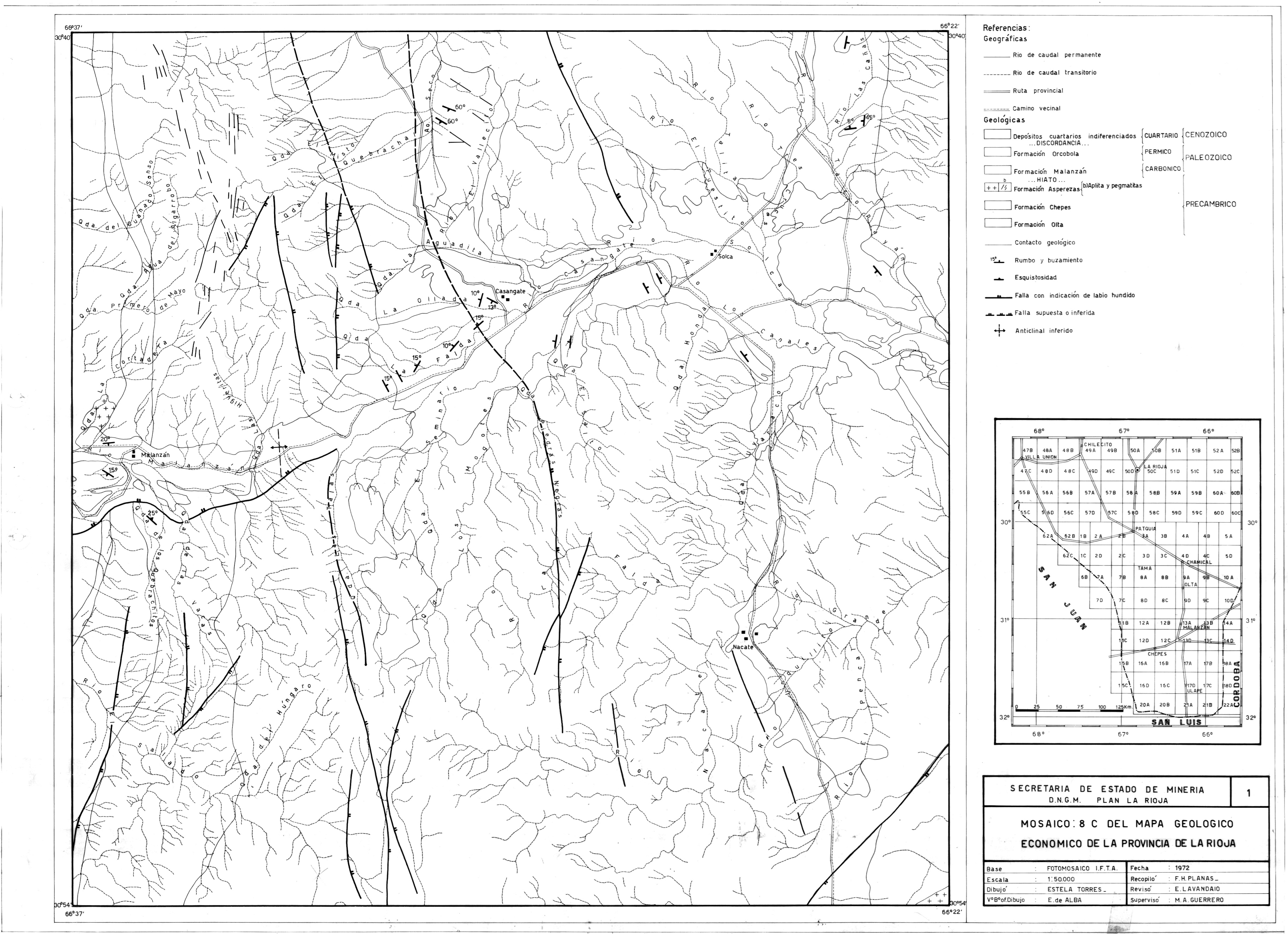 Argentina. Dirección Nacional de Geología y Minería. Plan La Rioja, 1972. Descripción de los Mosaicos 8C y 8D del Mapa Geológico Económico de la Provincia de La Rioja. La Rioja, Dirección Nacional de Geología y Minería. Plan La Rioja (ex Delegación Plan Cordillera Norte)