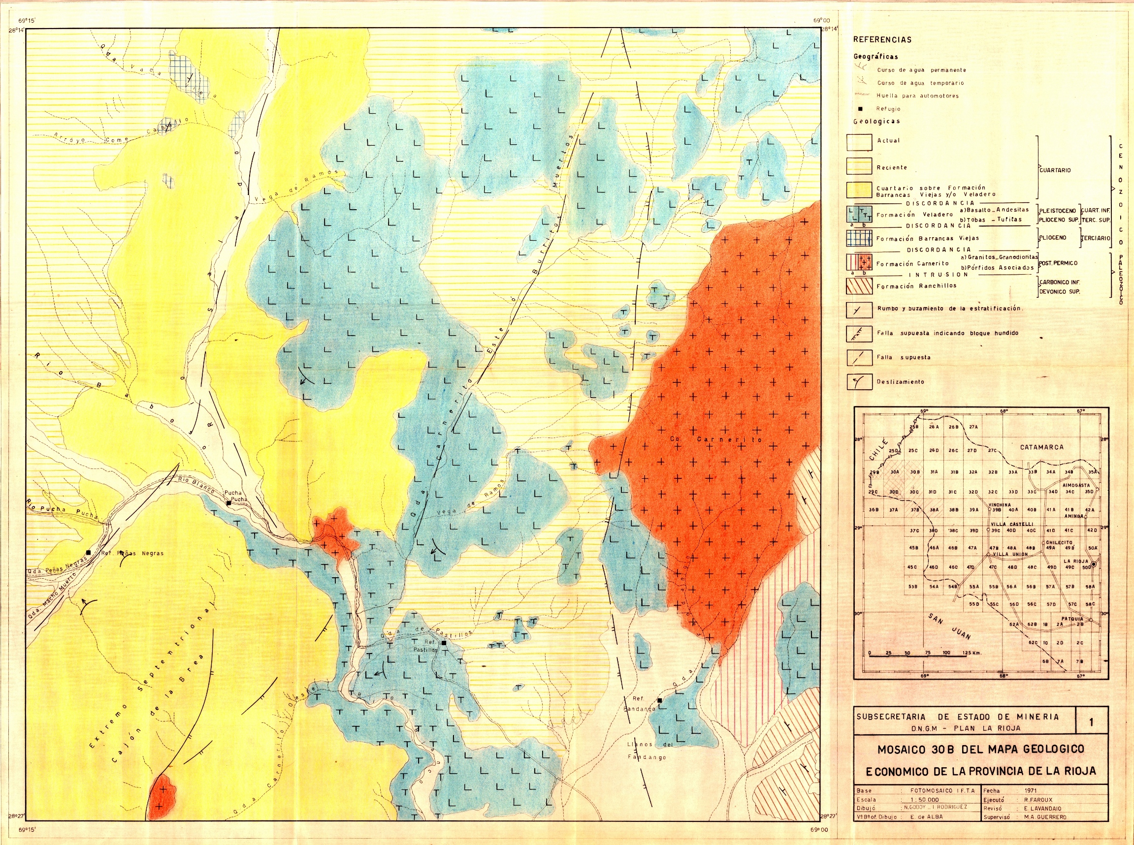 Fil: Faroux, R.H. Dirección Nacional de Geología y Minería. Plan La Rioja (ex Delegación Plan Cordillera Norte); Argentina.