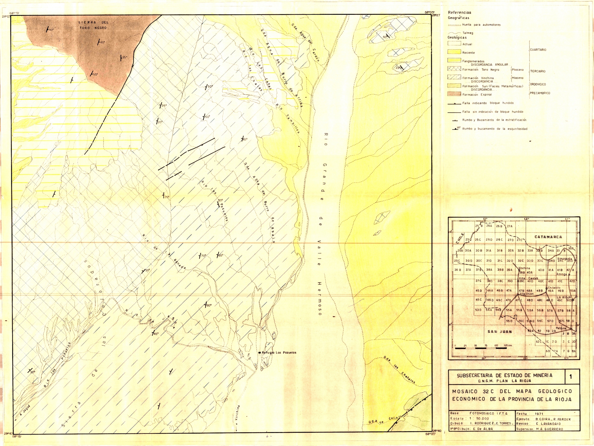Argentina. Dirección Nacional de Geología y Minería. Plan La Rioja, 1972. Descripción del Mosaico 32C del Mapa Geológico Económico de la Provincia de La Rioja. La Rioja, Dirección Nacional de Geología y Minería. Plan La Rioja (ex Delegación Plan Cordillera Norte)