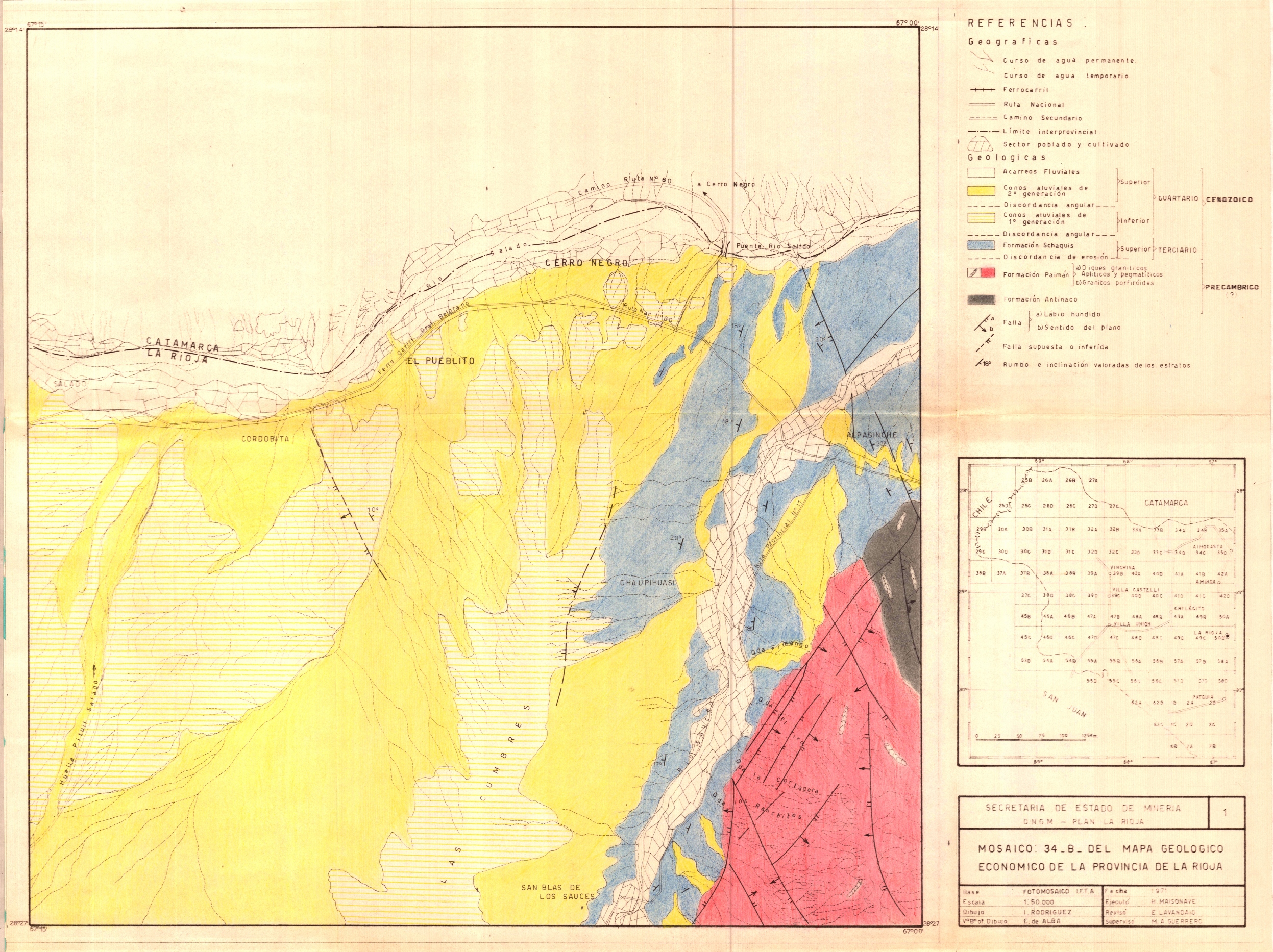 Este informe forma parte del mosaico del mapa geológico económico del Plan La Rioja, el cual puede accederse en http://repositorio.segemar.gov.ar/handle/308849217/1871